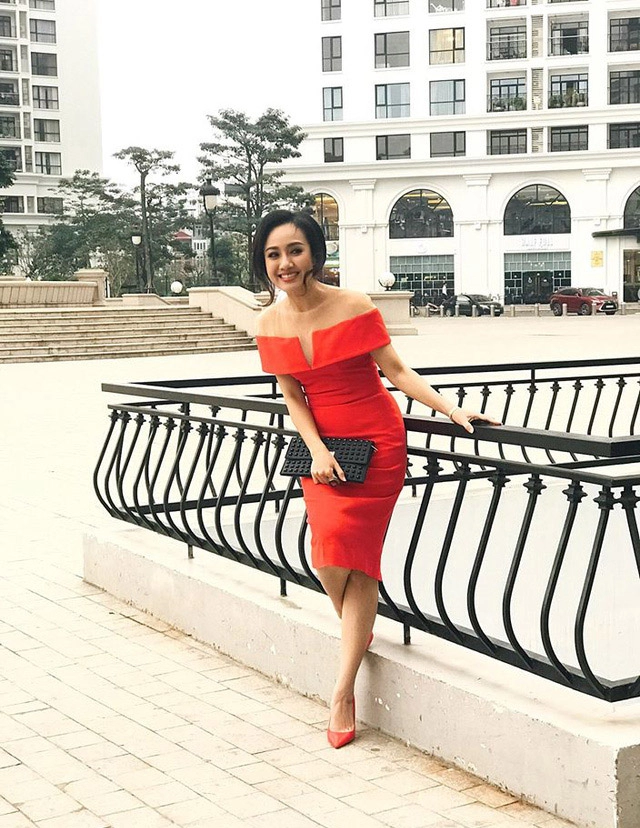 Nữ BTV đình đám chọn những món phụ kiện đắt giá như clutch và giày cao gót từ nhà mốt đình đám nước Ý, Valentino.