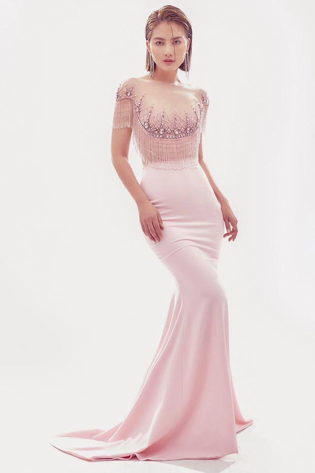 Sở hữu vóc dáng mình hạc xương mai nhưng vòng nào ra vòng nấy, không khó để Hương Giang có thể chinh phục thiết kế này chỉ trong vòng 1 nốt nhạc. Khác với sắc váy đỏ nồng nàn của đàn chị, Hoa hậu chuyển giới chọn diện váy tím sang chảnh, bí ẩn. Kiểu tóc tém đi kèm cũng giúp Hương Giang trông mới mẻ vô cùng.
