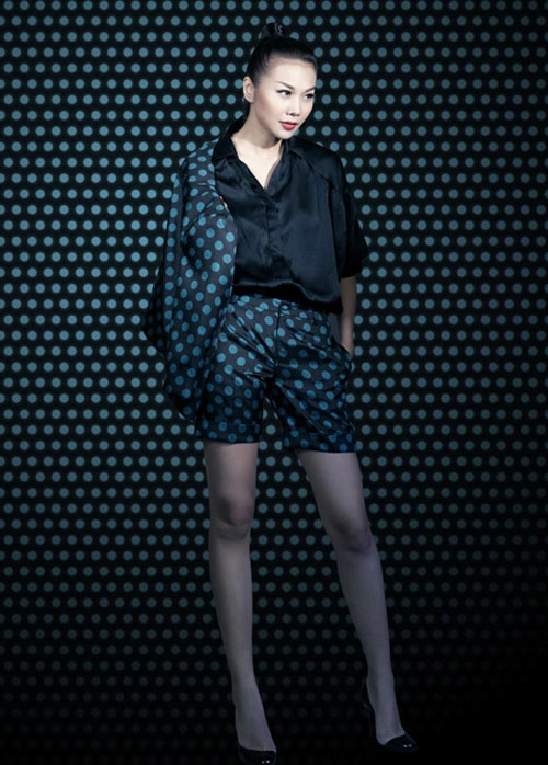 Thanh Hằng luôn chọn những chiếc sơ mi đơn giản nhưng có điểm nhấn, ví dụ như hàng cúc áo nổi bật như thế này