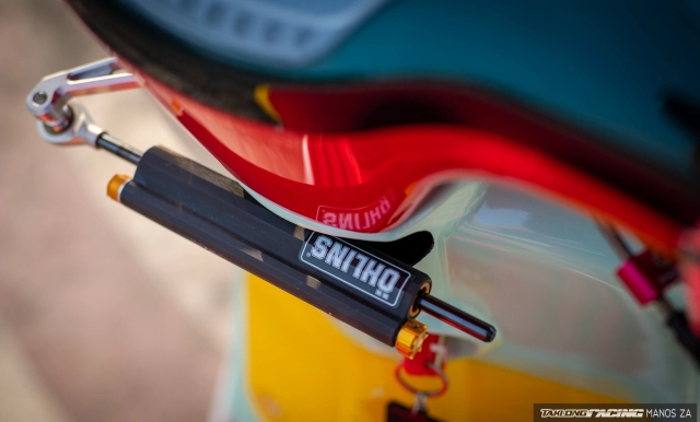 Ở phía sau cũng tương tự phía trước vẫn là thương hiệu Ohlins cũng được bắt thêm HPA dây để vấn đề canh chỉnh độ nén lò xo được tiện lợi hơn.