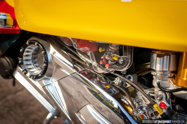 Góc bên này cũng là một tay Rossi nữa với dàn phụ kiện lắp thêm cũng tương đồng tạo nên sự cân đối cho đầu xe. Và để có sự cân đối này tổng số tiền đã chi ra cho dàn đầu ước tính đã chạm đến 100 triệu đồng.